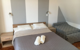– 7 pokoi (2- i 3-osobowe) z dużym łóżkiem podwójnym i rozkładanym fotelem