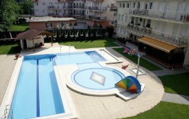 Apartament znajduje się na II piętrze kompleksu zaledwie kroki od głównego wejścia na teren kąpieliska i centrum uzdrowiska Hajduszoboszlo. Na miłych gości czeka wiele udogodnień /w cenie noclegu/: 3 zewnętrzne baseny hotelowe /od 1 maja do 30 września/: brodzik dla dzieci ze zjeżdżalnią, basen pływacki oraz basen z podgrzewaną wodą 22-24C, centrum wellness z sauną i jakuzzi /działają w zmiennym 30 minutowym cyklu/ oraz zapleczem fitness /czynne cały rok/.