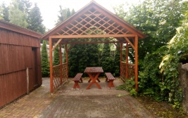 A házhoz rendezett igényes udvar és hangulatos filagória tartozik!