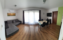 Klimatyzowany apartament dla 4-os., z balkonem, usytuowany w spokojnej okolicy domków wakacyjnych.